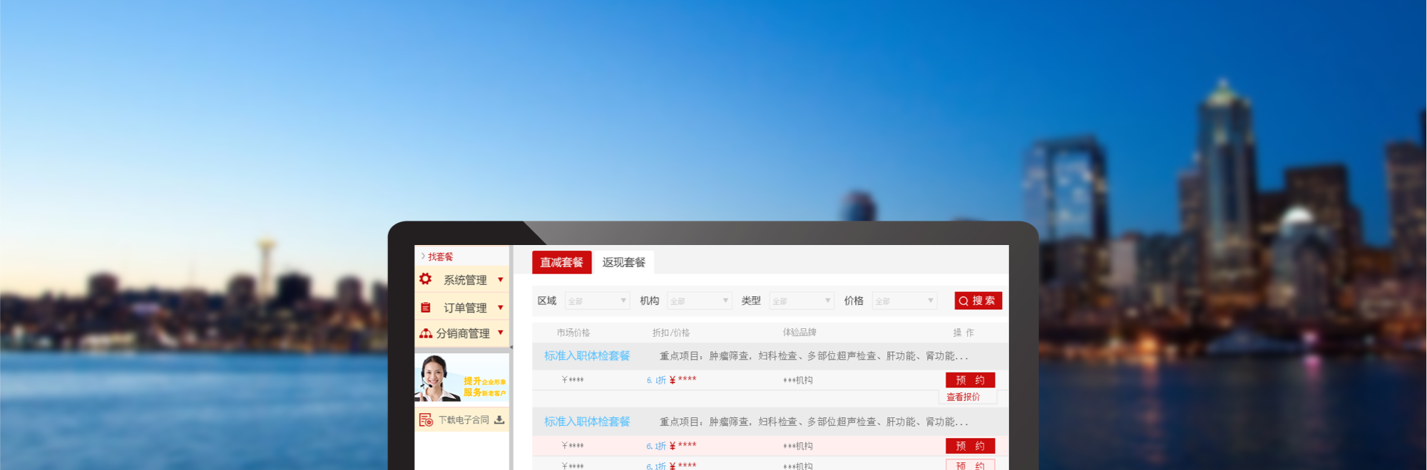 覆蓋全國的體檢資源,定制方便,落單系統(tǒng)功能強(qiáng)大方便,多平臺(tái)一體,終于能將業(yè)務(wù)推廣至全國。